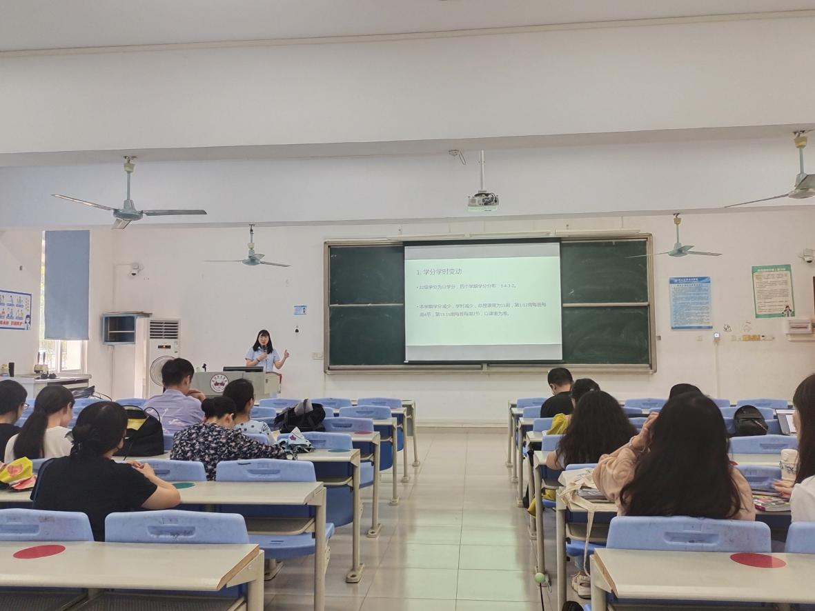 黄光艳老师强调了22级教学计划中学分学时的变动情况,提出翻译、写作任务提交方式的改变以及进一步完善四、六级备考的要求,希望全体大二的教师严格按照规定,做好学生自学单元和自主学习平台的督促工作。