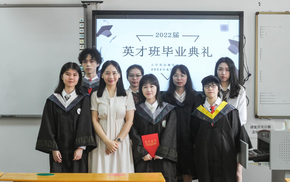 阴雨连绵,难阻毕业生返校步伐;雷声轰鸣,难阻毕业生奔赴未来。6月15日中午,2022届英才班毕业典礼在音乐楼204隆重举行。毕业生身着学士服,头戴学士帽,共同回首来路,展望前程,开启新篇。大英中心主任陈剑波副教授、英才班教师团队出席典礼。典礼由本届英才班班主任李碧慧主持。