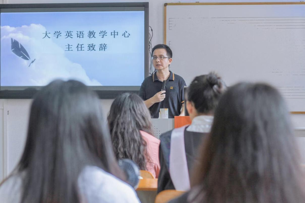 典礼上,陈主任发表毕业致辞。他提到,英才班课业较重,21位同学在英语学习上付出的时间和精力比其他同学几乎多一倍,但他们凭借刻苦学习、严谨自律、追求卓越的精神克服了种种困难,最终顺利完成了英才班所有课程的学习。对此,陈主任表示高度的赞扬和诚挚的祝贺。