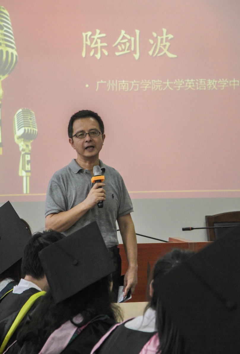 在领导致辞环节,作为一手创立并带领英才班发展的领导者,陈剑波主任发表了自己的感想和祝贺。他赞赏了英才班同学“明知有坦途,偏要试难路”的勇气,对他们这几年来的努力看在眼中、喜在心里,同时他强调:“大家从英才班毕业,并不代表着英语学习生涯的结束。相反,大家可以把在英才班的学习当作起点,在未来继续学习英语,为自己的职业发展添上强劲的双翼。” 他还鼓励同学们要保持好奇心和探索精神,不断开拓视野,拥抱多元文化,成为具有国际视野和社会责任感的优秀人才。
