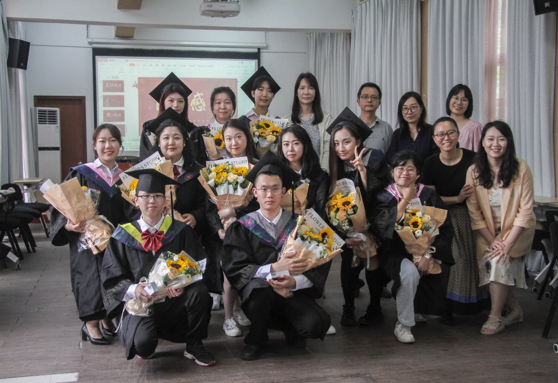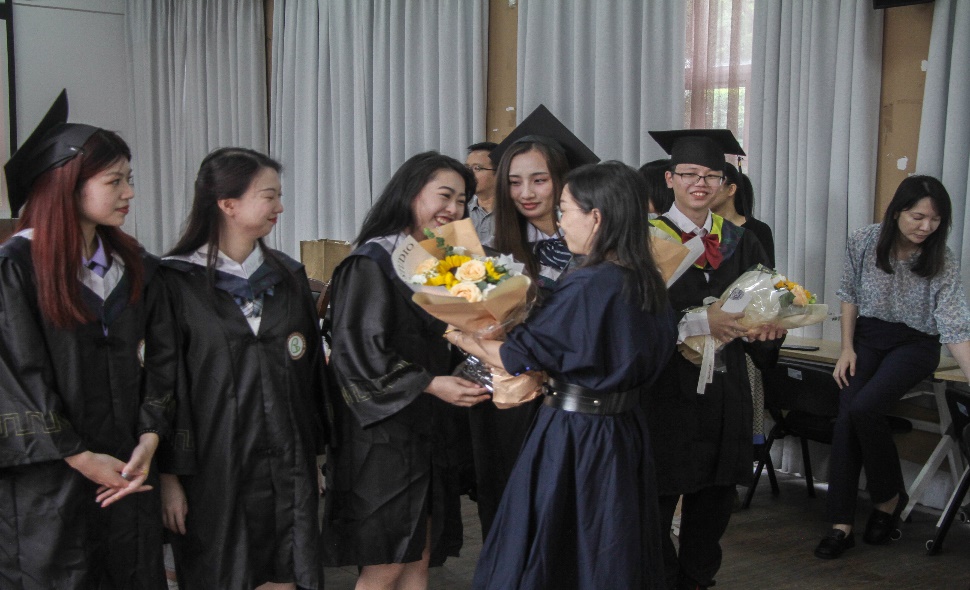 最后,大英中心陈主任和教师代表们为毕业生们献上美丽的鲜花和纪念品,众人合影留念,给19英才班的结业典礼画上了圆满的句号。