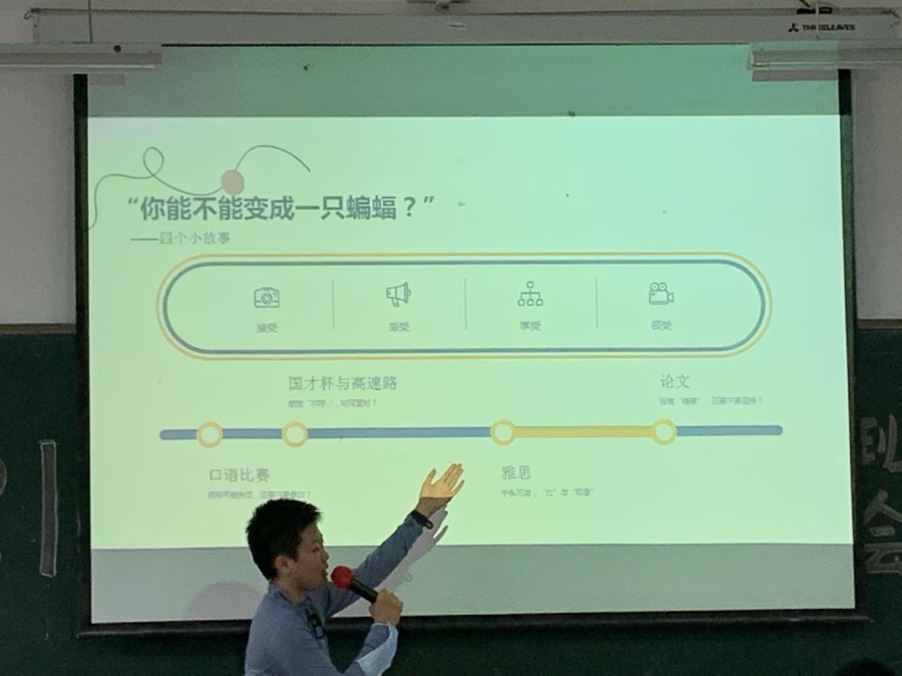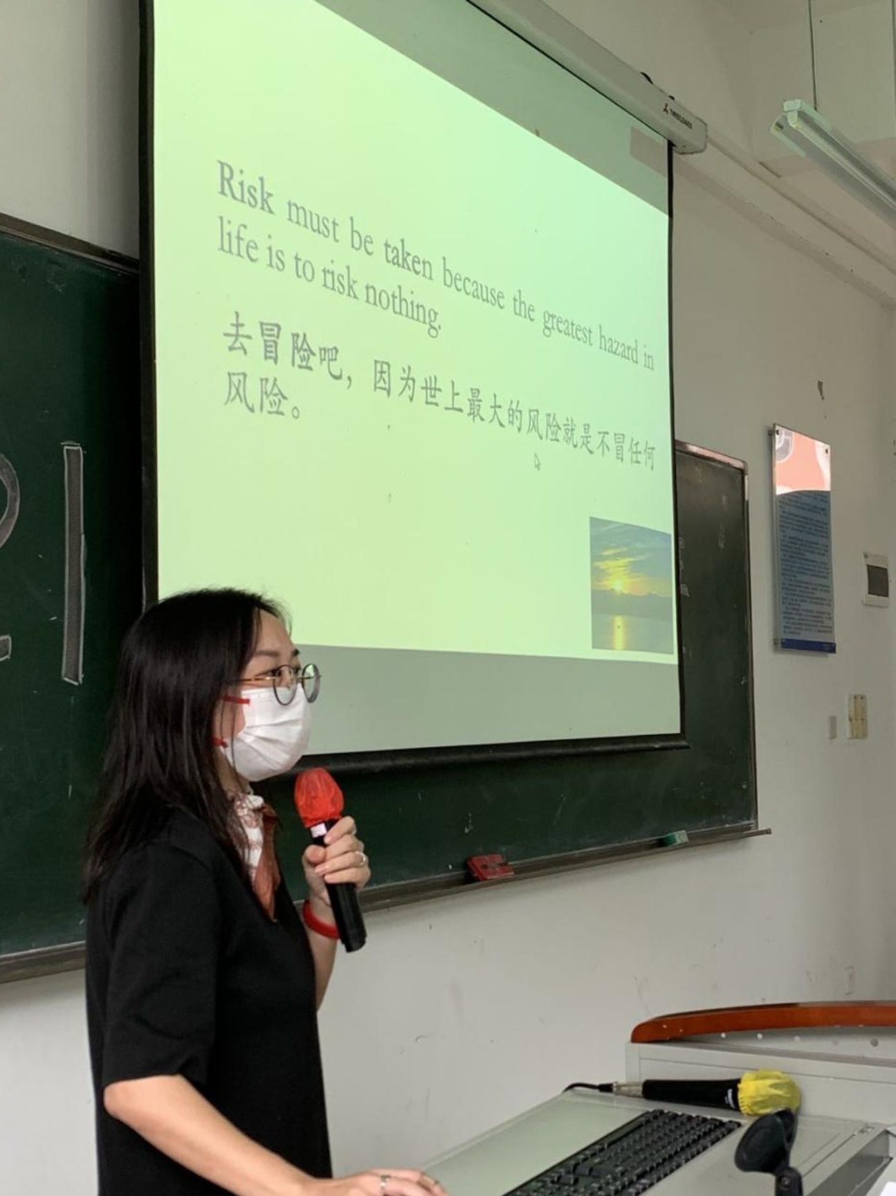 随后学院英语比赛最高奖项保持者黄一心同学分享了她自加入英才班后的学习、成长经历以及个人总结出的一套系统学习方法,强调了在不同学习阶段反思的必要性与重要性,并就新生对大学生活的迷茫与困惑提供了宝贵经验。紧接着谭蔼淇同学分享了她从一次课堂任务发现了自己口语上的天赋到参加全国英语演讲大赛拿下优胜奖一步步过关斩将的经历,鼓励同学们大胆开口讲英语,而不是说“哑巴英语”,大大激发了同学们对英语口语的热情。