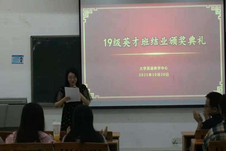 接着,陪伴了英才班两年的班主任邓雅倩,也对19英才班取得的成果一一讲述,带领大家重新回看过去的种种经历。她对同学们在联盟杯、外研社、大学生英语竞赛等各类赛事中取得的成绩感到欣喜,表示19英才班取得的成果离不开同学们的努力,也离不开威廉希尔中文网站尽力为同学们提供的优质资源。关于未来,她激励同学们:“宝剑锋从磨砺出,梅花香自苦寒来,希望同学们再接再厉、再创佳绩。”