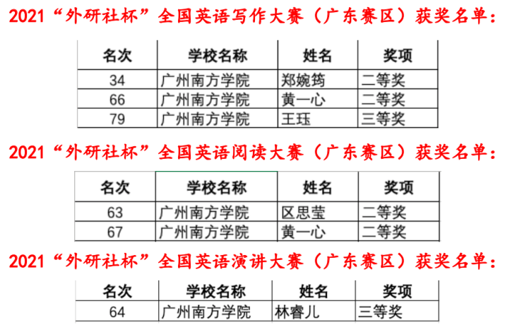 威廉希尔中文网站学生在2021年外研社·国才杯全国英语写作、阅读、演讲大赛广东赛区复赛中取得优异成绩