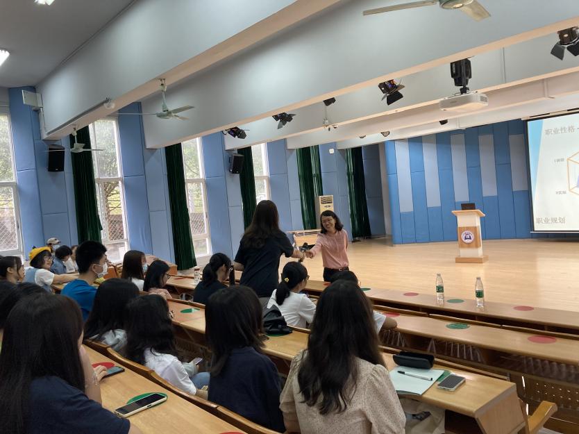 在全场响亮的掌声中,卓女士进入正式讲课。她先抛出了“我是谁”和“我的梦想是什么”两个轻松的小问题,引导同学们深入地思考最核心的问题:如何科学地进行自我定位?这不仅要求同学们要思索自己在就业市场中的地位,究竟属于“龙翔于天”的得心应手还是“河鱼入海”的无所适从,而且表明了自我解析的重要性。卓女士介绍了“霍兰德职业兴趣测试”,鼓励同学们能够在校期间积极参加各类社团活动,培养自己的能力、了解自己的性格特长、兴趣爱好及适宜从事的行业,从而走好就业规划的第一步。