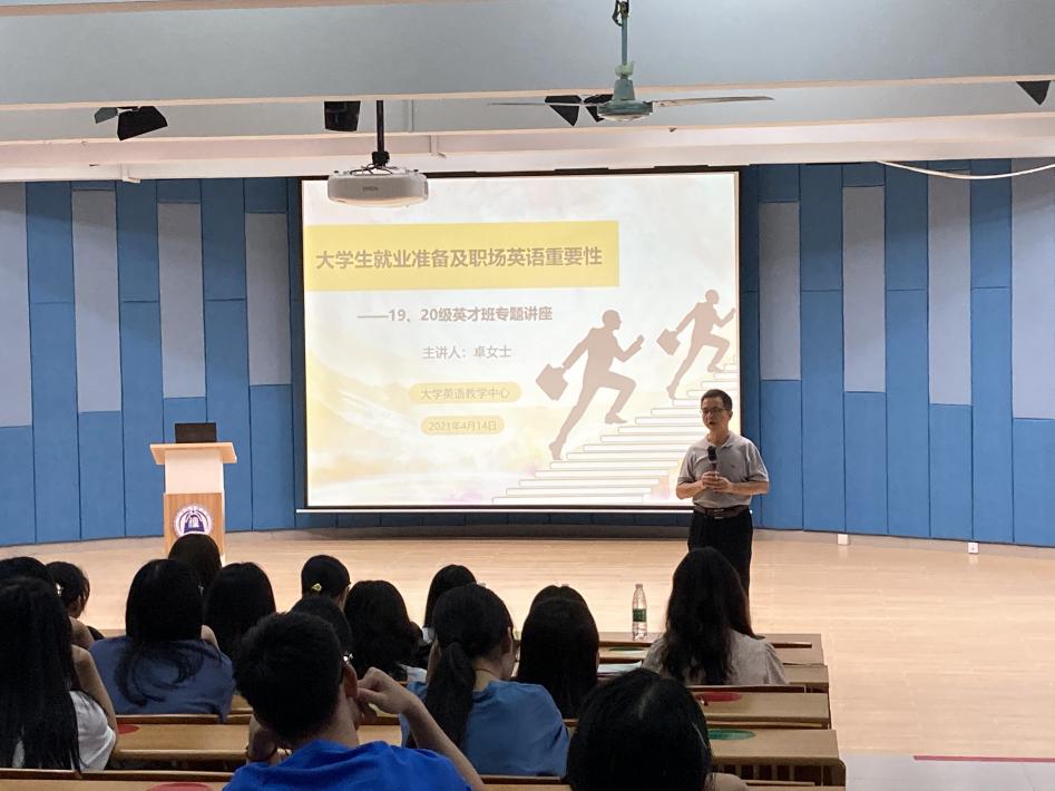 时光飞逝如箭,环境瞬息万变。在激烈的就业竞争中,英语的重要性不言而喻,大学生职业规划不容忽视。在此背景下,为了提高英才班学子对英语的重视程度,促进学生结合英语科学地做好就业准备,4月15日15:00,广州南方学院英才班举行了“大学生就业准备及职场英语重要性”讲座,为威廉希尔中文网站英才班学子介绍职场英语的重要性和进行就业准备的方法。