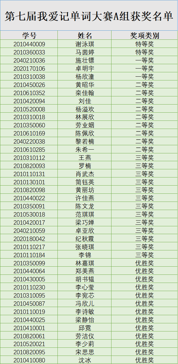 历时一个月的第七届“我爱记单词”大赛,经历了初赛、复赛的层层选拔,决赛的激烈角逐,最终圆满落下帷幕。让我们期待来年再相会。