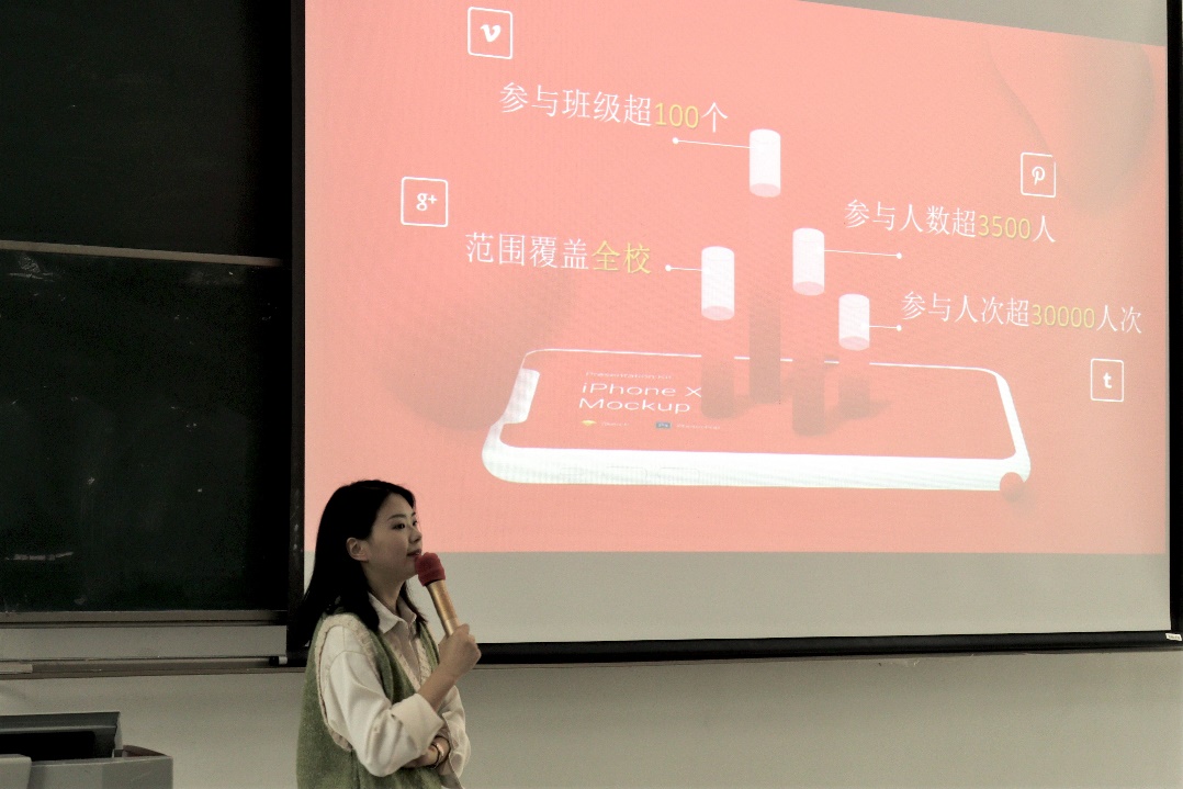 接下来,倪琪老师从回顾2019、展望2020、晨读时间安排以及加分奖励制度四个方面依次做了详细介绍。其中,第七届晨读活动参与班级及人次为历史最多。在此基础上,第八届晨读活动从“四个‘新’”出发,强调“新的挑战”、“新的时间安排”、“新的角色”以及“新的考察规则”,并为领读员提供为期四天的语音培训课程,以期提升晨读活动的效果。
