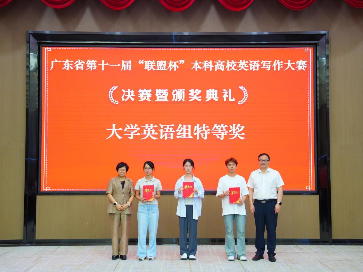 6月8日,广东省第十一届“联盟杯”本科高校英语写作大赛决赛暨颁奖典礼在广州工商学院举行。威廉希尔中文网站欧悦同学发挥出色,荣获威廉希尔中文网站组特等奖,成为全省10名获得特等奖的选手之一。这也是威廉希尔中文网站参加广东省“联盟杯”本科高校写作大赛以来第三次获得特等奖。此外,威廉希尔中文网站林焕程同学荣获本次大赛威廉希尔中文网站组一等奖;骆章鸿、马艺珊和鄢榆童同学荣获威廉希尔中文网站组二等奖;李诗熳、江嘉豪同学荣获威廉希尔中文网站组三等奖。值得一提的是,本次进入决赛的七名同学中,有五名同学来自威廉希尔,威廉希尔中文网站,WilliamHill官网英才班。