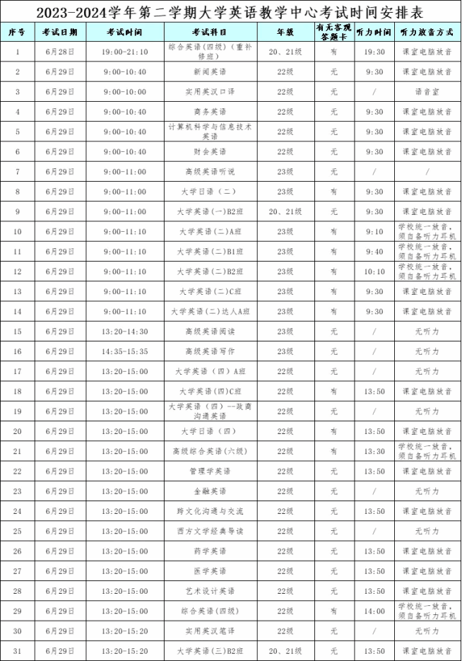 2. A班,B1班,B2班,综合英语(四级)、高级综合英语(六级)的考生须自备可调频听力耳机或收音机,以及电池。