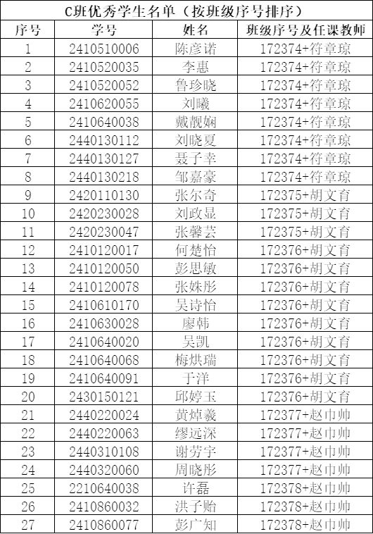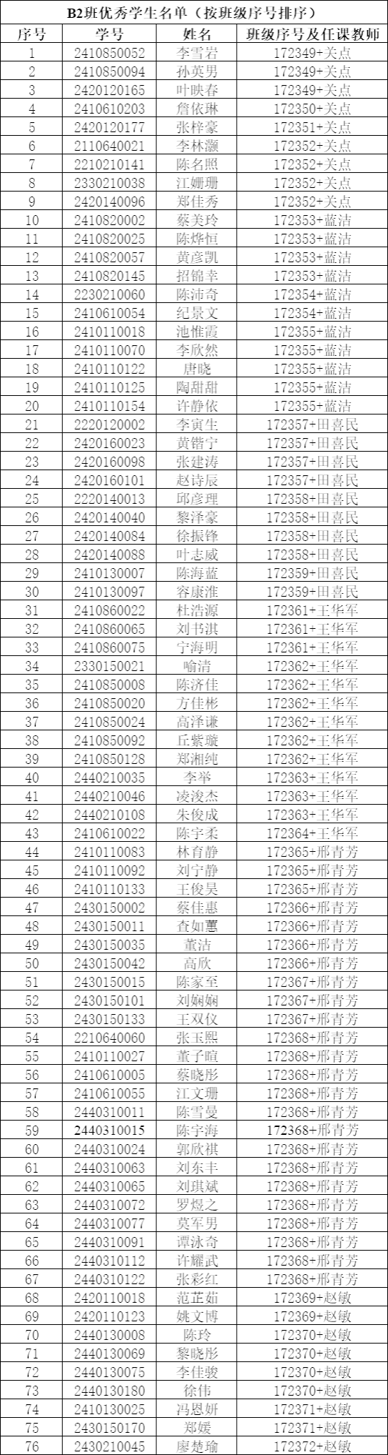 3. C班学生第二学期期末成绩优秀(名单见附件2)可调至B2班。