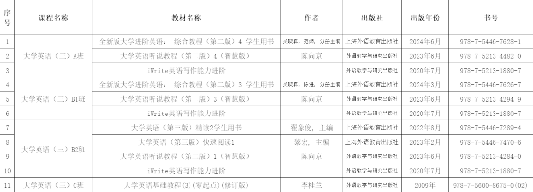 特别提醒:升降级的学生需领取/购买对应等级的教材。上学期末已填写大英教材订购表的学生务必向班委更新教材数量。