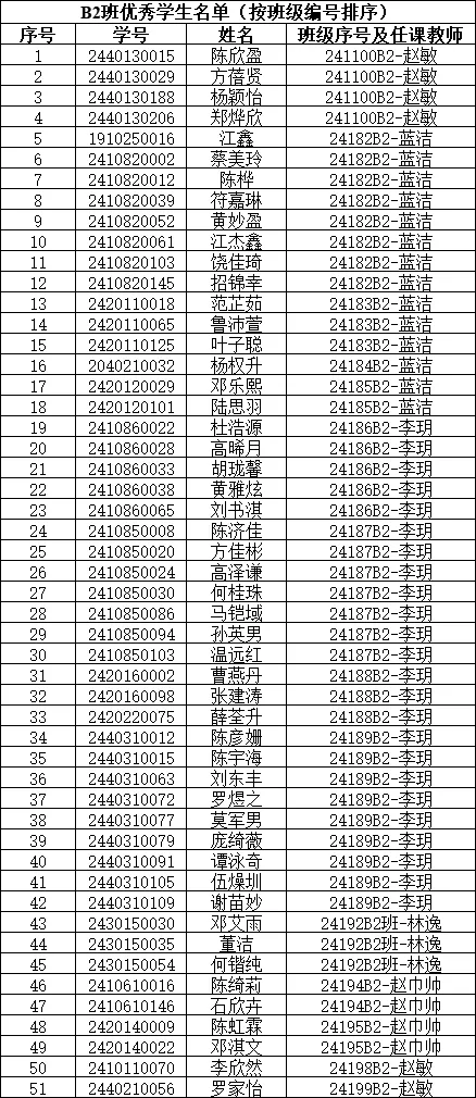 附件224级第一学期 B1B2班期末考试优秀学生名单
