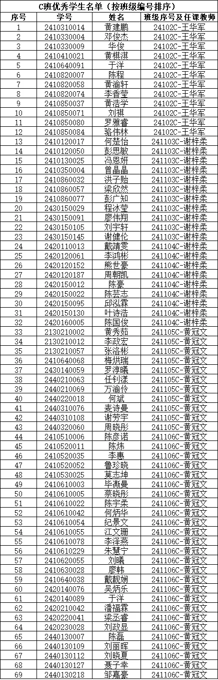 3. C班学生第一学期期末成绩优秀(名单见附件2)可调至B2班。