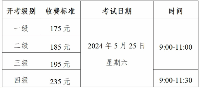 三、纸笔考试收费标准和考试时间