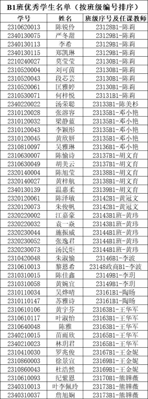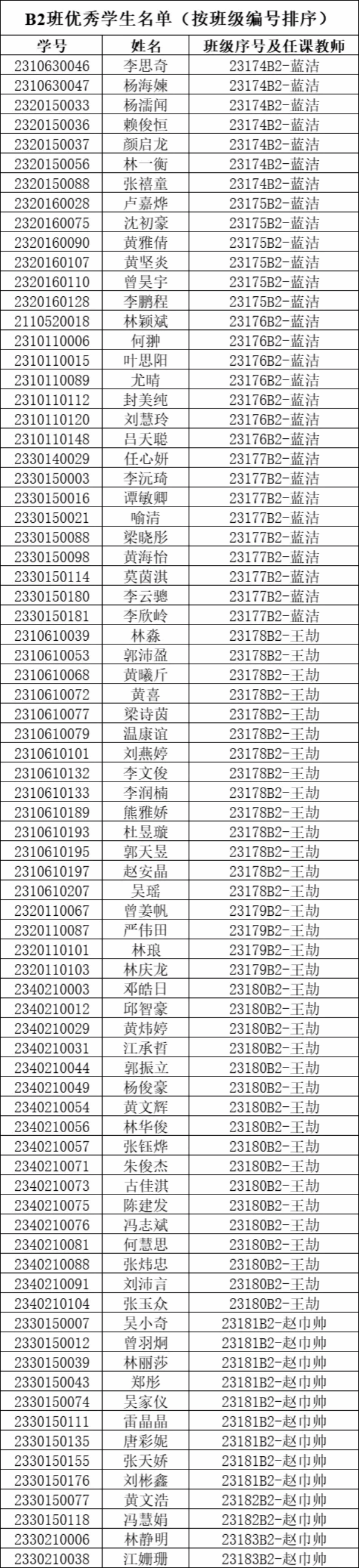 附件2:23级第一学期 B1、B2班期末考试优秀学生名单