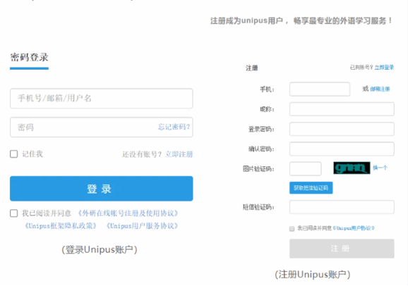 第二步:系统检测登录状态,请登录Unipus账号,没有Unipus账号的用户需注册(请使用手机号注册)。