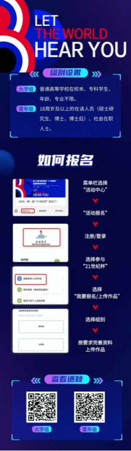 中国日报社“21世纪杯”全国英语演讲比赛系我国知名度最高、影响力最大的演讲赛事之一,入选《全国普通高校大学生竞赛分析报告》竞赛目录,是教育部官方认可的全国比赛。2025年度“21世纪杯”广州南方学院选拔赛是由中国日报社旗下《21世纪报》和威廉希尔,威廉希尔中文网站,WilliamHill官网共同举办,分为以下两个阶段: