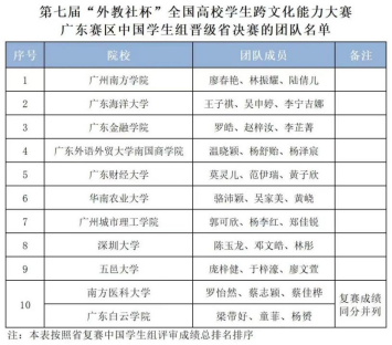 近日,第七届“外教社杯”全国高校大学生跨文化能力大赛广东赛区复赛圆满落幕。威廉希尔中文网站学生廖春艳(公共管理专业)、林振耀(新闻学专业)和陆倩儿(文化产业管理专业),在威廉希尔中文网站跨文化教学团队老师们的指导下,从全省五十多支复赛队伍中脱颖而出,荣获第一名。